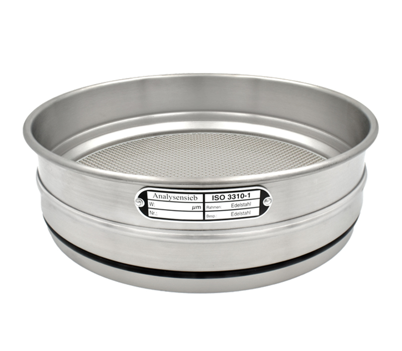 - Bespannung: Edelstahlanalysensiebgewebe ISO 3310-1